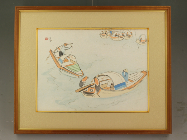 - 【巧芸】竹内栖鳳【舟遊び】◆紙本◆アクリル付◆額 z04009