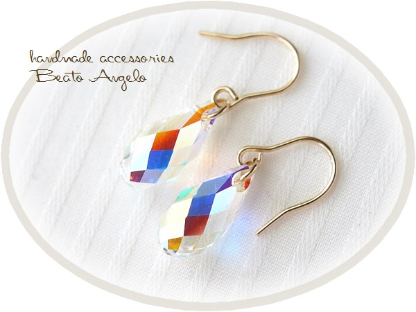 - ■+angelo+K14GF スワロフスキー 6010のピアス(p-084)クリスタルAB L 一粒 ドロップ