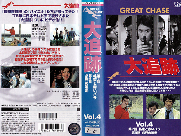 - ◆レンタル落ちVHS◆大追跡 Vol.4 (1978)◆出演:加山雄三/藤竜也/沖雅也/柴田恭兵/長谷直美/渡辺文雄/桂小金治/伊佐山ひろ子/緑摩子