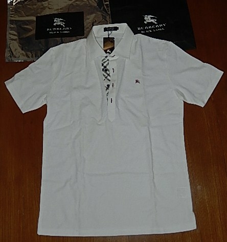 - 新品 タグ バーバリーブラックレーベル BURBERRY 前立 ノバチェック 加工 ポロシャツ ホワイト タータンチェック シャツ 日本製 L 三陽商会