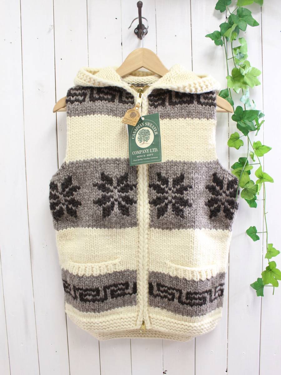 - 新品◆CANADIAN SWEATER カナディアンセーター◆カウチンセーター 雪柄 フード付き ジップニットベスト 40 定価48,000円*