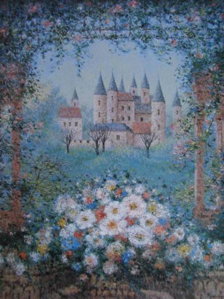 - 西村 龍介、花と城、希少な額装用画集より、新品高級額装付、状態良好、送料無料