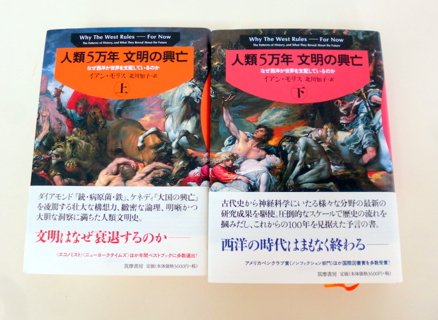 - イアン・モリス『人類5万年 文明の興亡 なぜ西洋が世界を支配しているのか(上・下)』筑摩書房