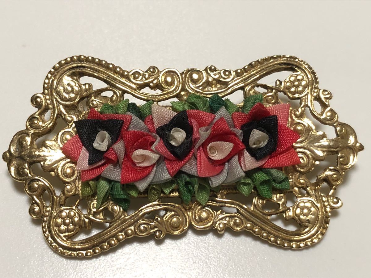 - アンティーク調 つまみ細工 彫金 17.8g 薔薇細工 2WAY ペンダントトップ兼ブローチ