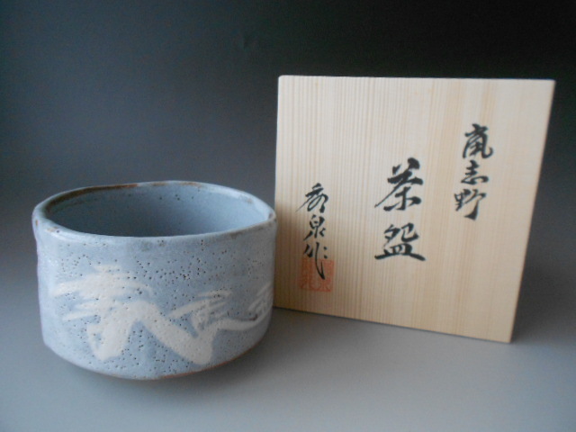 - 美濃焼! 沢田秀一 山水鼠志野抹茶碗 木箱 建水 水差 棗 ギフト 茶道具