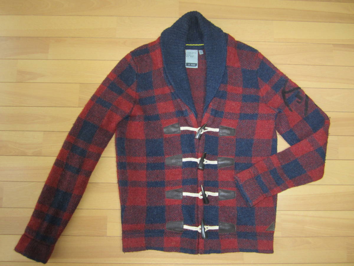 - ★J.C.RAGS RN128608 ショールカラーチェック ニットジャケット★紺赤sizeS★