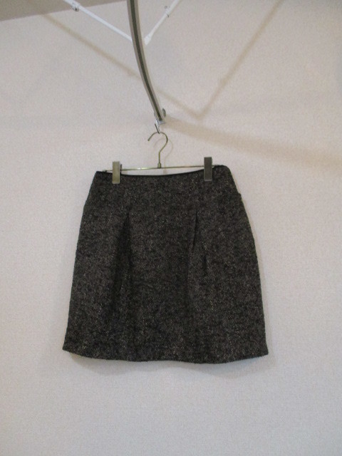 - 23区茶系ツイードタック入ミニスカート(USED)111118)