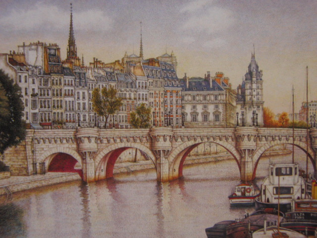 - 円池茂、セーヌ河とポンヌッフ、希少な画集より、新品高級額、額装付、状態良好、送料込み、arte