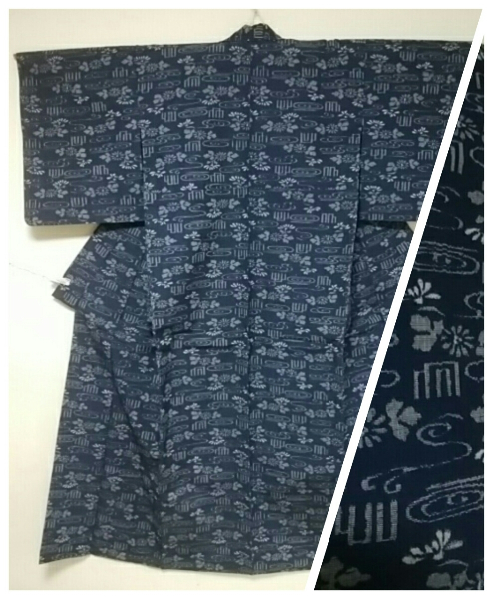 - [ウール着物]単衣/身丈152cm/藍色/ハッ掛が付いています