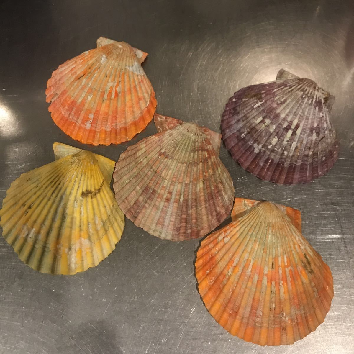 - 希少自然素材!鮮明ひおうぎ貝研磨貝殻6cm前後 (5~7cmサイズ) 5枚1セット 大分県蒲江産、、貝殻のみです。色はアットランダムになります。