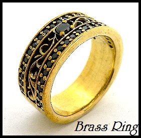 - 真鍮製Brassセンターアラベスク ブラックジルコニア ライン ブラス リング/14号ラスト1個