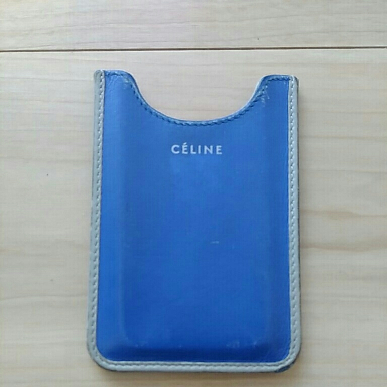 - セリーヌ スマホケース CELINE iphone4用 革 ブルー 縁取りグレー