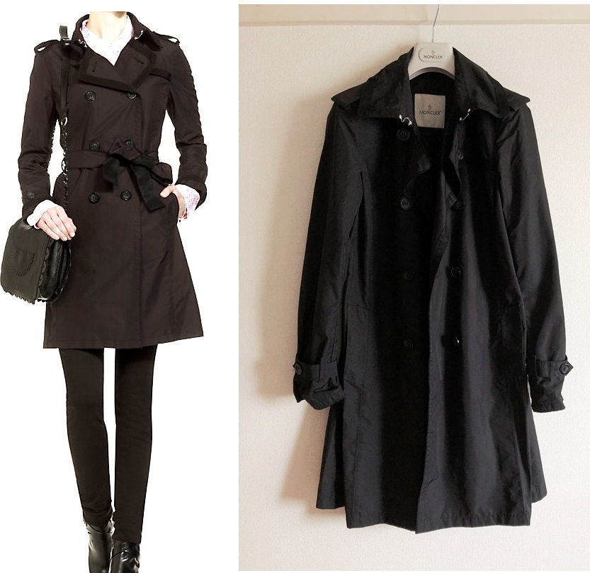 > 美品 完売本物 MONCLER モンクレール 着やせ効果大 トレンチコート 2 (細めMぐらい) 黒