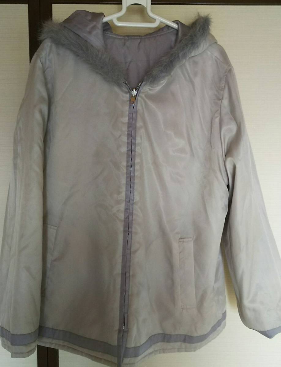 > 【レディース リバーシブル アウター ジャンパー ブルゾン フード付き Lサイズくらい グレー】中古品