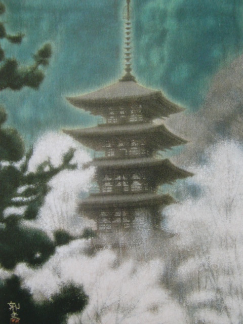 - 平山郁夫、【長谷寺の春】、希少な額装用画集より、状態良好、新品額装付、インテリア、春、桜