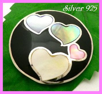 - シルバー925銀のシェル貝殻ハート×オニキス入りサークル プレート ペンダント