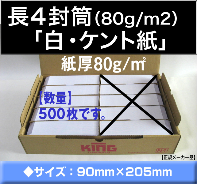 - 長4封筒《紙厚80g/m2 白 ケント紙 長形4号》500枚 ホワイト B5 横三ツ折 長型4号 キングコーポレーション