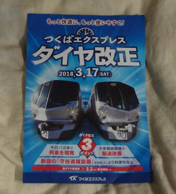 - ★つくばエクスプレス★2018年3月ダイヤ改正説明チラシ