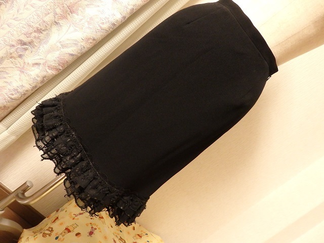 - 【綺麗】★伊太利屋 黒色スカート 裾が華やか/合物★