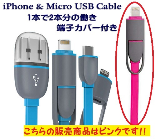 > ◇2in1iPhone&マイクロUSBケーブル◇【ピンク】◇複数落札まとめて依頼対応品◇クリックポスト(追跡可)185円発送◇