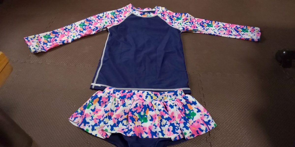 - 新品濃紺、花柄ラッシュガードセット サイズXL(115~125)
