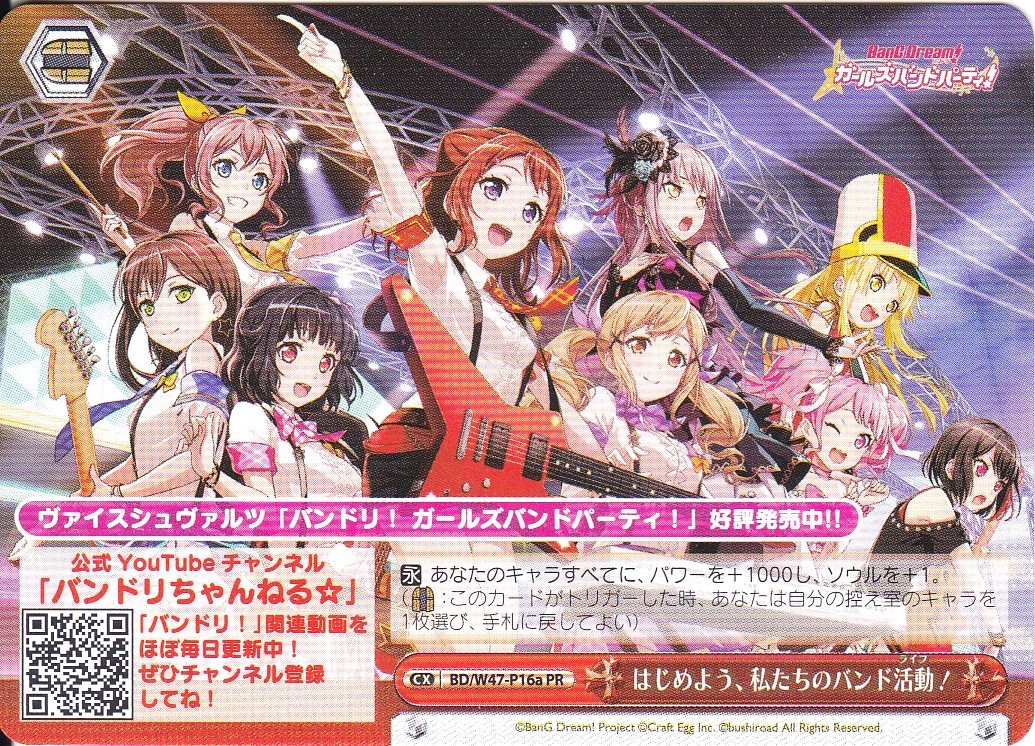 - C93 コミケ ヴァイスシュヴァルツ ヴァイス バンドリ! ガールズバンドパーティ! プロモ BD/W47-P16A PR はじめよう 、私たちのバンド活動!
