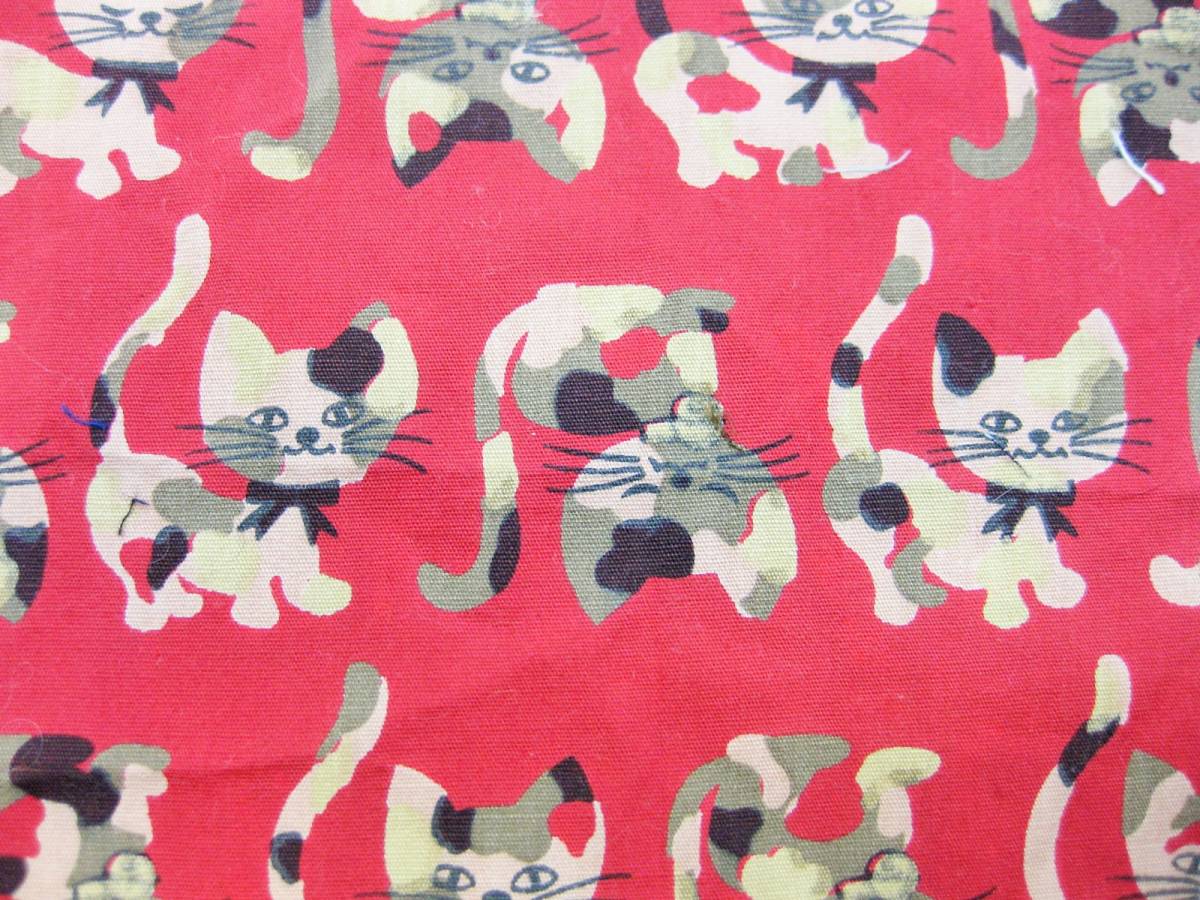 - ■IK 猫 プリント はぎれ 2枚 まとめて 生地 赤 キルティング 中綿入り