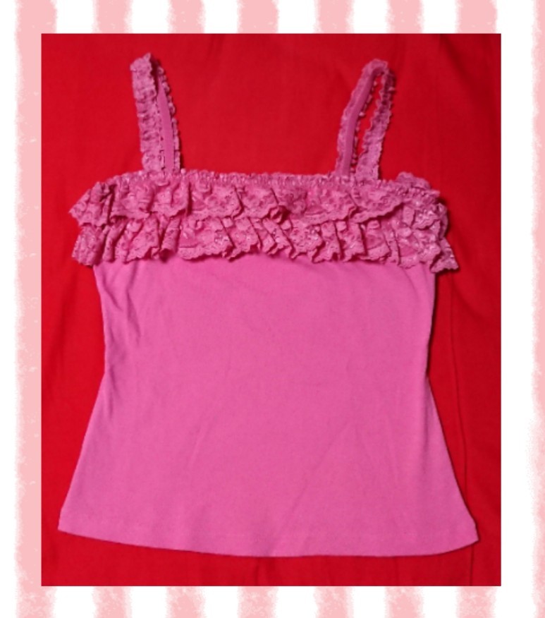 - 《美品》【PeachJohn フリル キャミソール】ピーチジョン ゴム インナー チューブトップ 肩紐取り外し可 レース 伸縮性 S M 谷間カバー PJ