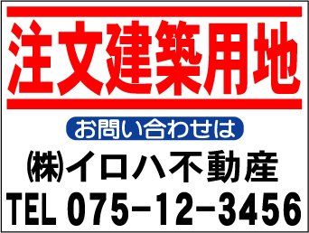 - ¥999社名入不動産募集看板「注文建築用地」Sサイズ45x60cm