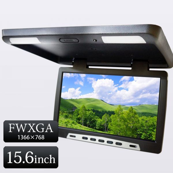 > 15.6インチ フリップダウンモニター 大画面 1366×768 FWXGA画質 リモコン付 LEDルーム球 IRヘッドホン対応 手動電源/記憶電源機能