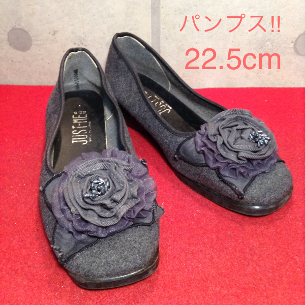 > 【売り切り!!送料無料!!】A-40 中古激安!! JUST ME 日本製 パンプス フラワーモチーフ 22.5cm 箱無し!
