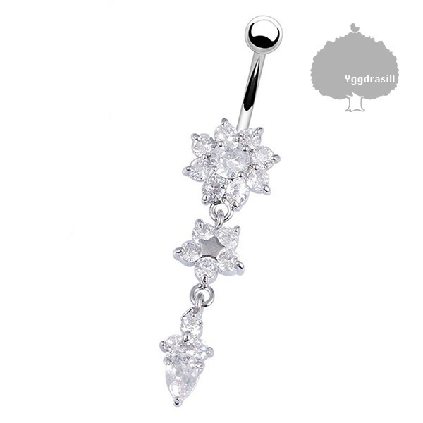 - YGG★新品 3連 ラインストーン ボディピアス バナナ バーベル 花 シルバー クリア 316L サージカルステンレス