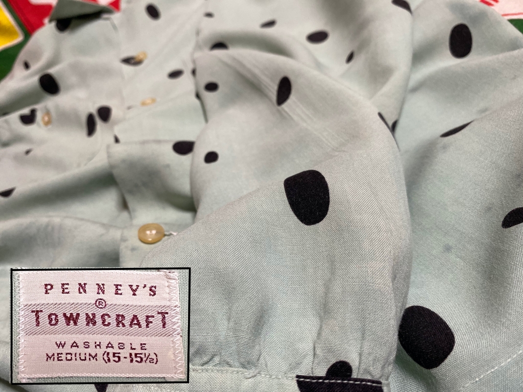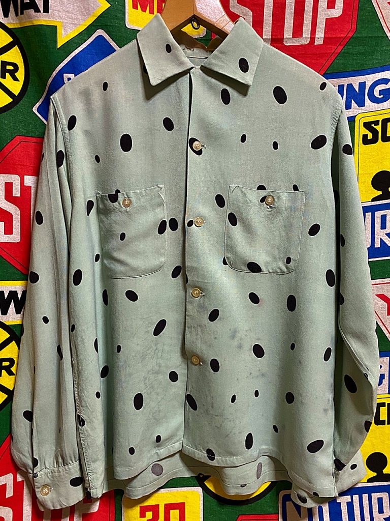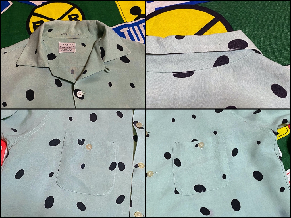 > ★オンブック級の1枚★Made in USA製アメリカ製TOWNCRAFTタウンクラフトビンテージランダムドットプリントレーヨンギャバシャツ50s50年代M