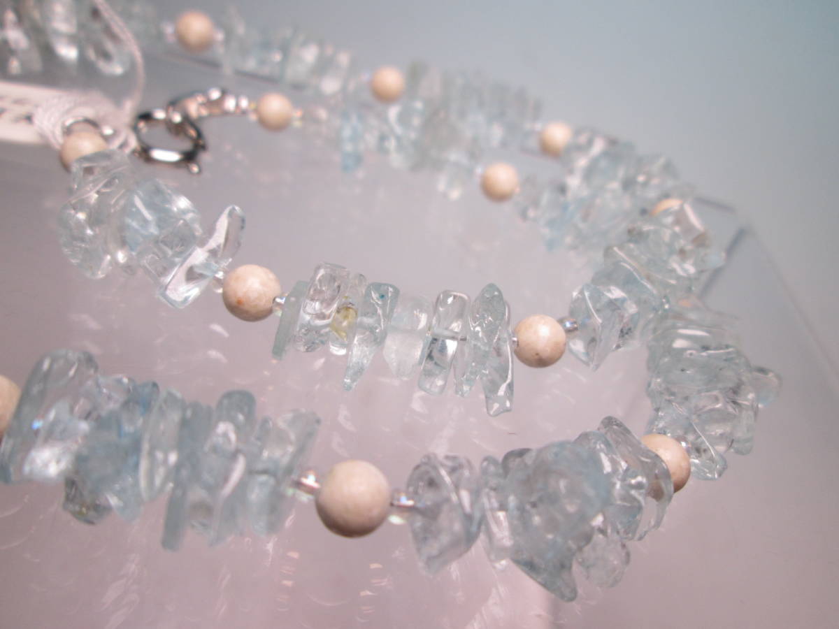 - ☆HO 白玉&アクアマリンのデザインネックレス 38g 上代\15000 未使用品