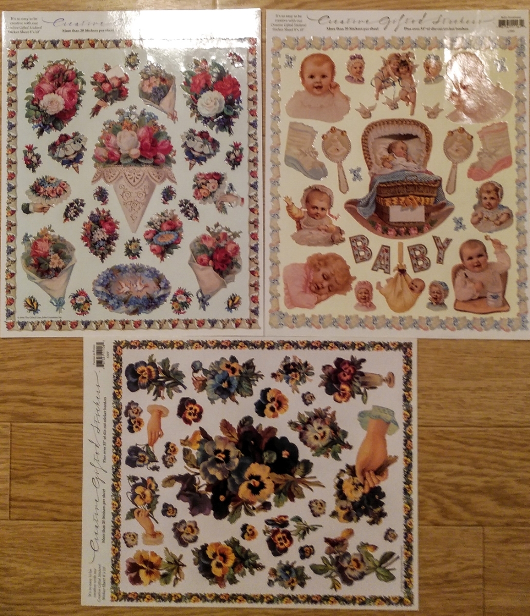 - 即決☆未使用☆貴重!!30年位前☆フェリシモ 通販品☆ 豪華☆3枚!!ヴィクトリアンな シール ステッカー パンジー 花束 赤ちゃん