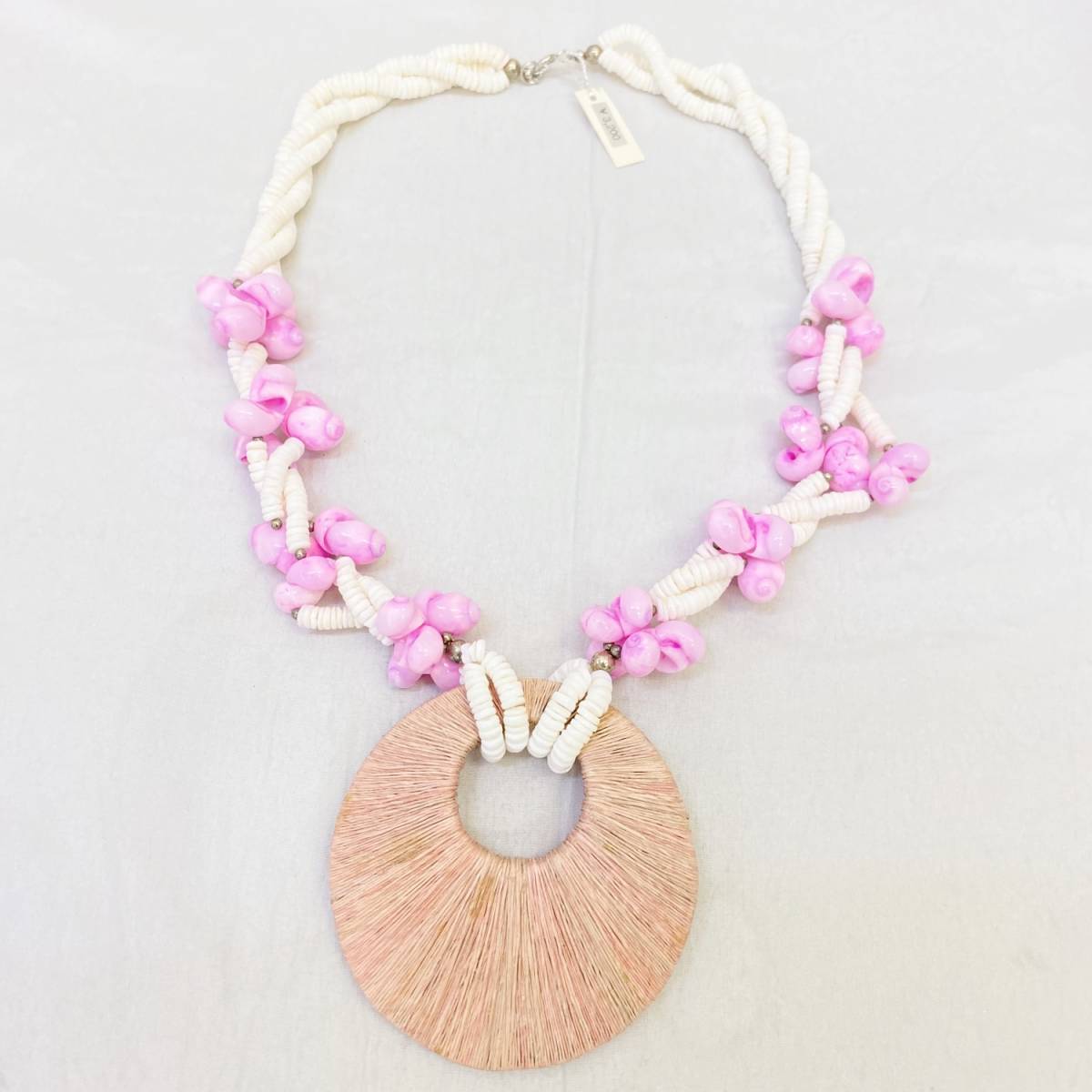 - 【ネックレス】約61cm ペンダント 貝(シェル)のような雰囲気 ホワイト ピンク 南国気分☆ ボリューム満点! 619