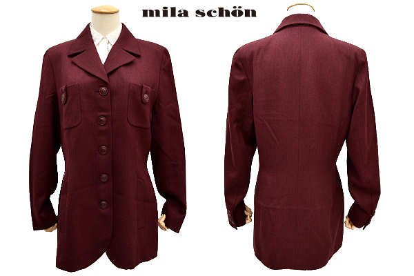 > L-1582★送料無料★mila schon ミラショーン★秋冬 イタリア製 ワイン色 両胸ポケット付き ロングコート ジャケット 48