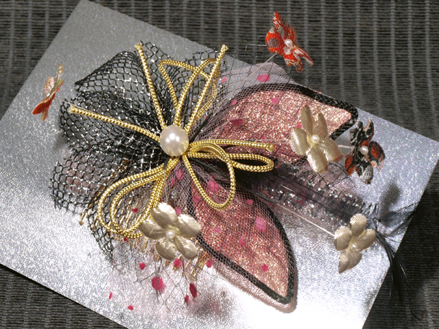 > ★ 【子ども】花文 メッシュ 紐飾り 髪飾り リボン コーム 七五三 TAJA03016風楽