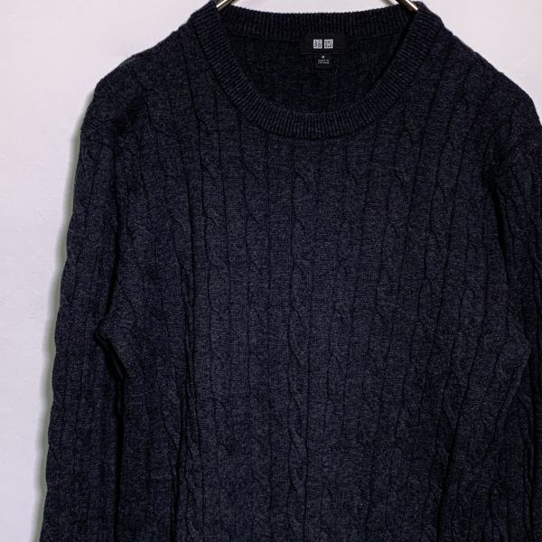 - 【美品】ユニクロ UNIQLO Mサイズ グレー ケーブルニット セーター 綿95% カシミア5%