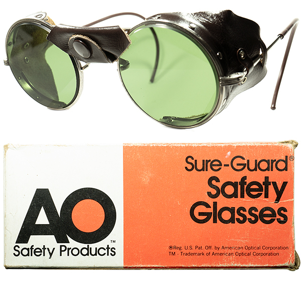 激渋 HEAVY DUTY1960sデッド USA製 AO アメリカンオプティカル AMERICAN OPTICAL 後期型 レザー サイドガード INDUSTRIAL ラウンド 丸眼鏡