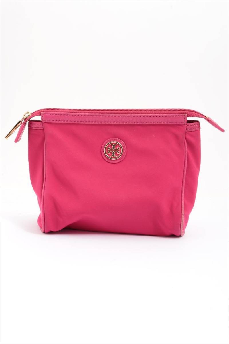 - $ 美品 $ ◆ トリーバーチ ◆ TORY BURCH ◆ ナイロン製・化粧ポーチ 小物入れ ◆ ピンク系 × ゴールド金具 ◆ 送料無料!!