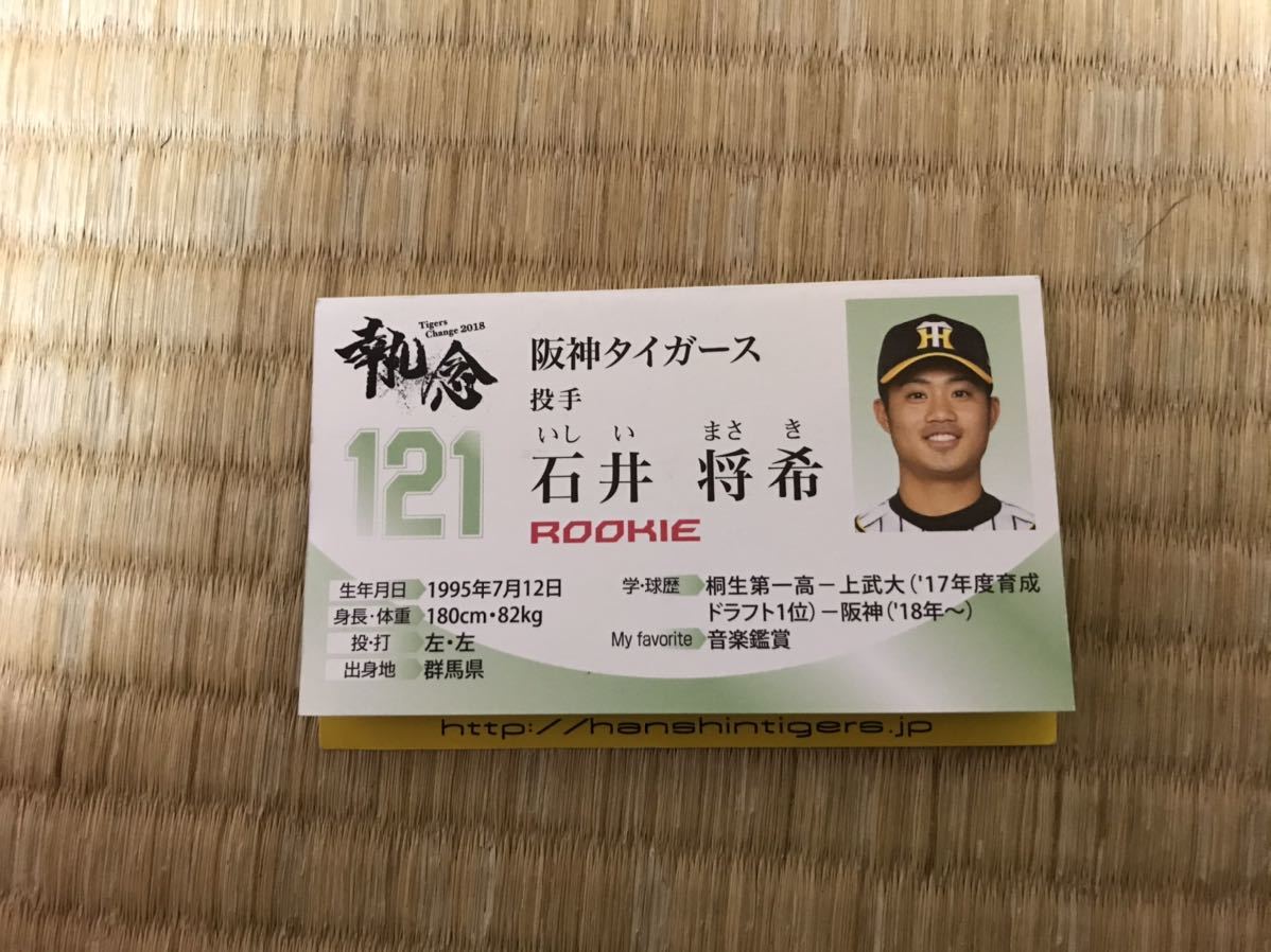 - 2018 阪神タイガース 石井将希 ファンクラブ会員限定 名刺型ルーキーカード