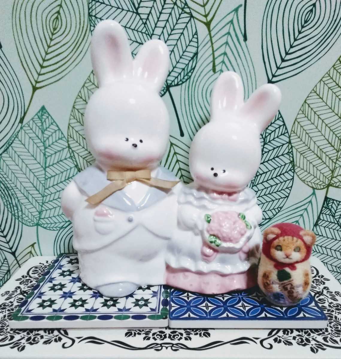 - 即決 昭和レトロ 夫婦 ウサギ 兎 うさぎ 陶器 貯金箱 コインバンク 干支 検: ぬいぐるみ アンティーク 骨董品 オブジェ 内藤ルネ 水森亜土
