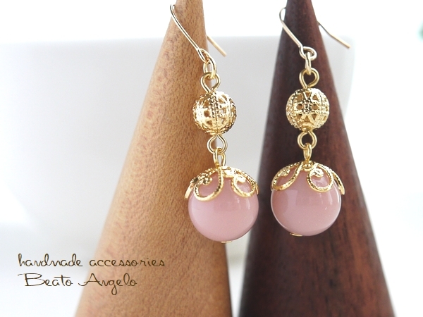 > ◆◆+angelo+ドイツビーズと透かし玉のピアス(p-039)クラシックローズ G ピンク チタン 樹脂 イヤリング ※廃番