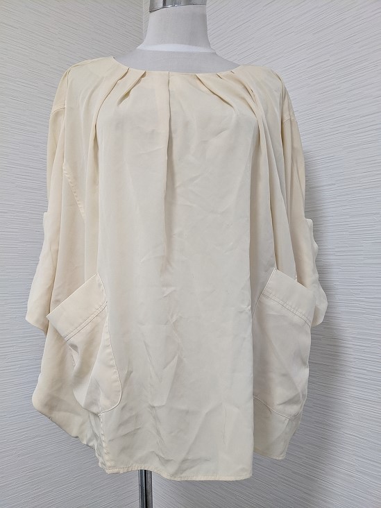 - 【送料無料】A129 ビアッジョブルー ポンチョ ブラウス かぶり 割烹着 ポケット カットソー トップス 大きいサイズ オーバーサイズ
