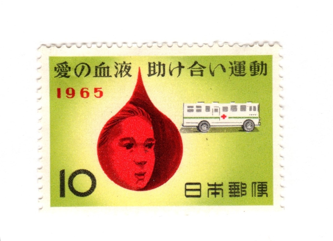 - 昭和40年1965「愛の献血助け合い運動/血液の中の子どもと採血車」10円切手・未使用【送料無料】「熊五郎の切手」00800350