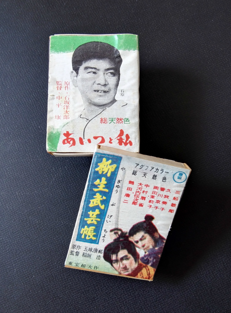 - 当時物 映画広告 販促 マッチ箱 石原裕次郎 三船敏郎 2点set!☆ 総天然色 「あいつと私」 芦川いづみ 「柳生武芸帳」 久我美子 燐寸箱 ☆