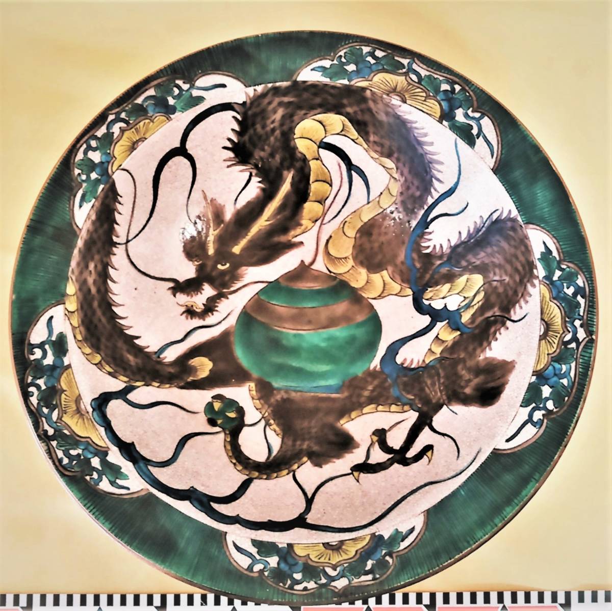 - ※蔵出《九谷焼:擂り鉢式深底型大皿》(手書絵/角福銘)[箱無・中古]※