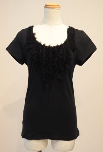 - ICB アイシービー カットソー 半袖 フリル Mサイズ ブラック レディース ストレッチ otkyuk k2f0414