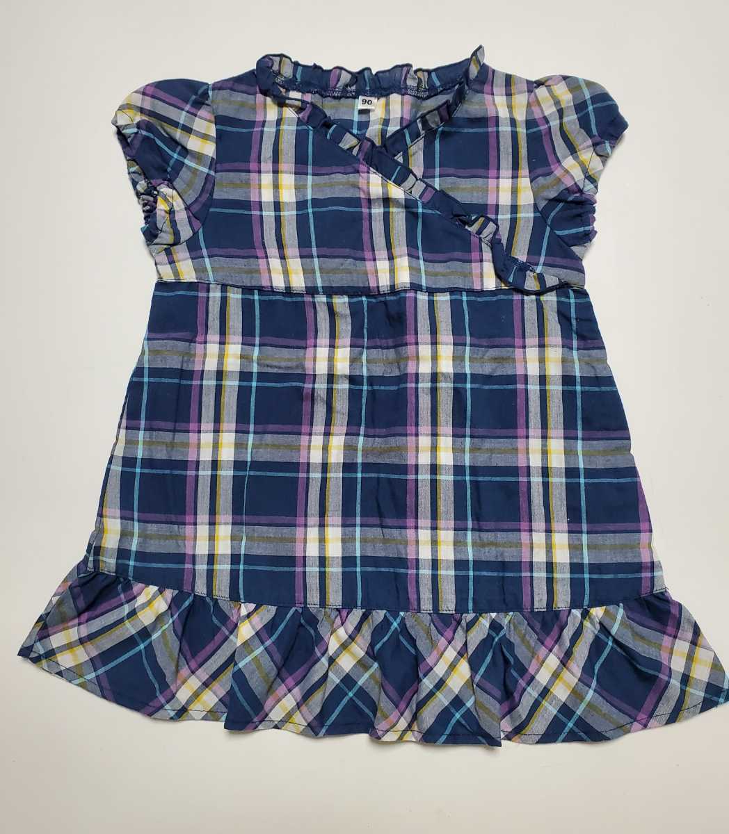 - 185円発送します!! 美品 西松屋 女の子 とっても可愛い ワンピース 85 90 紺 タータンチェック オシャレ 裾フリル